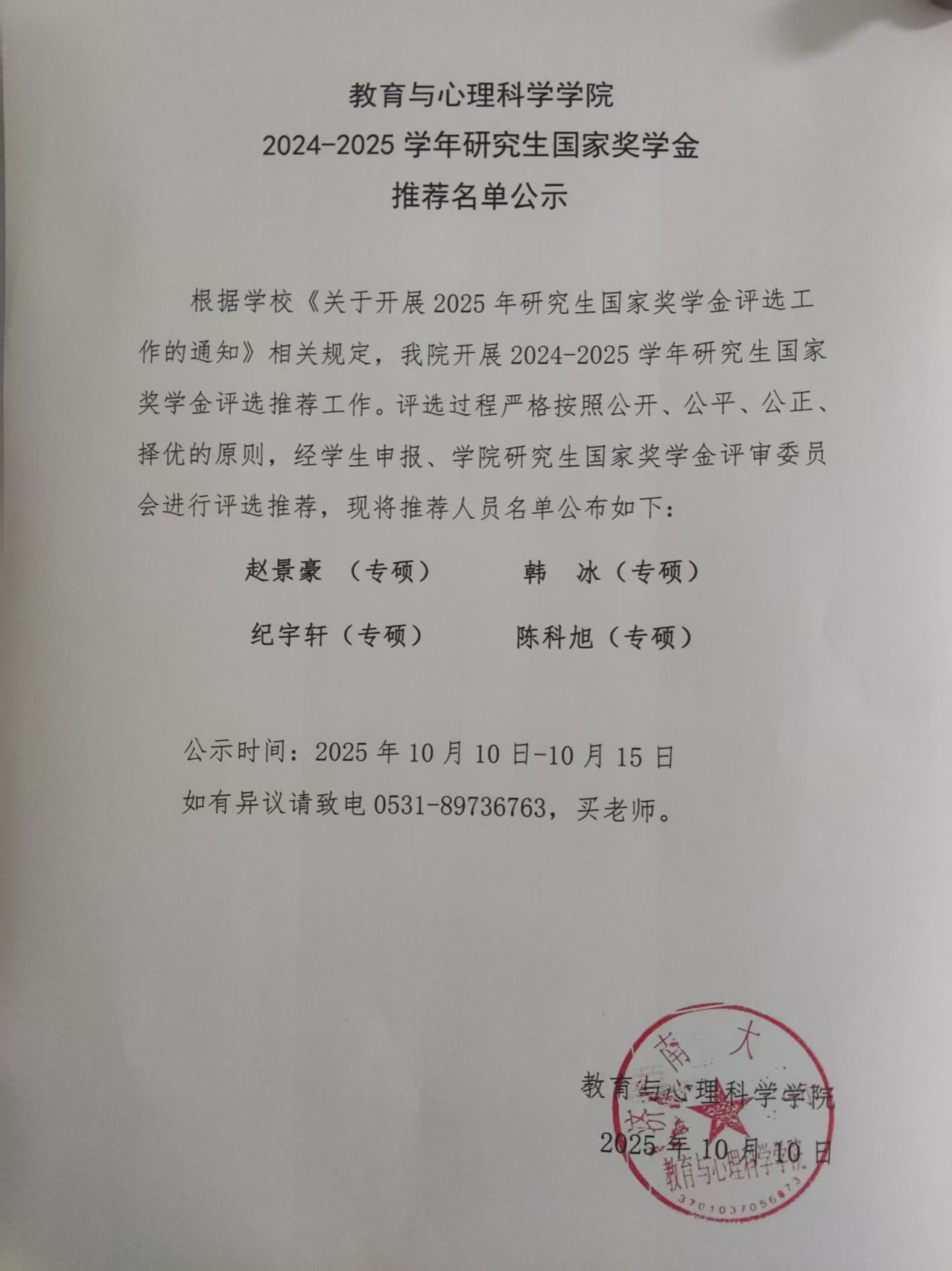 根据学校《关于开展2025年研究生国家奖学金评选工作的通知》相关规定,裙底偷拍 开展2024-2025学年研究生国家奖学金评选推荐工作。评选过程严格按照公开、公平、公正、择优的原则,经学生申报、学院研究生国家奖学金评审委员会进行评选推荐,现将推荐人员名单公布如下: