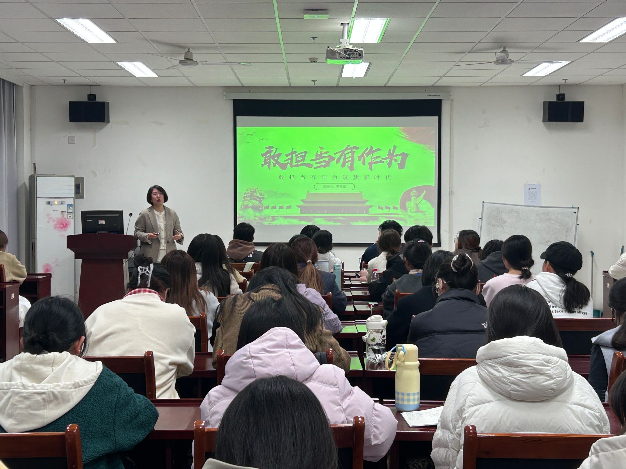 李开云以“敢担当有作为:敢担当有作为筑梦新时代”为主题,通过何为“担当作为”“担当作为是党员的基本素质”“新时代党员干部如何担当作为”三章节,阐释了担当精神的内涵,引导学员在专业学习、社会服务中主动扛起责任,以实干实绩向党组织靠拢。