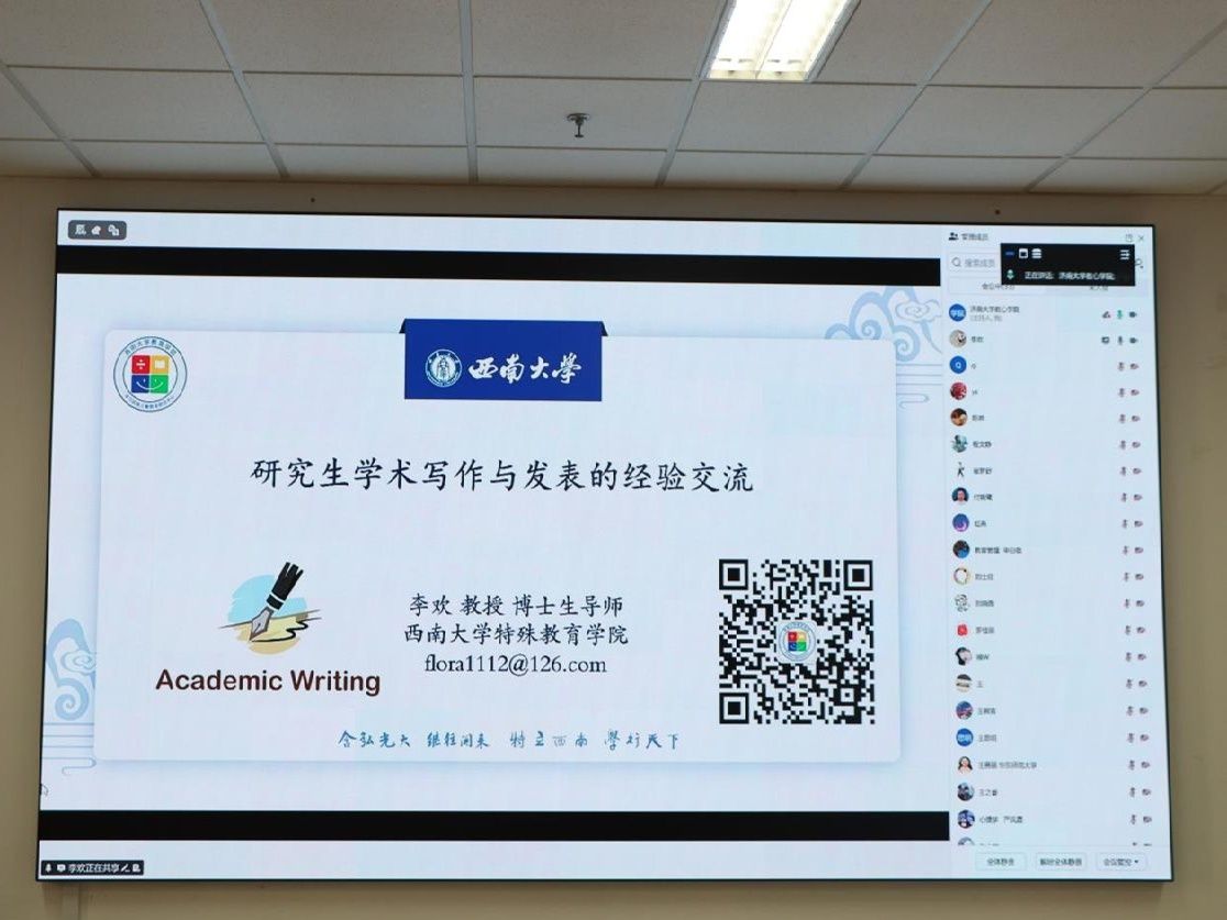 开幕式后,学术报告环节有序展开。深圳大学心理学院陈琦教授率先带来主题为《人类认知的计算建模研究:认知心理学的视角》的报告,从认知心理学维度切入,系统阐释了心理认知过程计算模型的构建逻辑与验证路径,为在场师生打开了认知研究的全新视角;西南大学教育学部李欢教授则聚焦《研究生学术写作与发表的经验交流》,结合自身科研与指导经验,从论文选题、撰写规范到期刊投稿等环节,为研究生学术成果产出提供了实用指引;华东师范大学教育学部王勇丽副教授分享《孤独症儿童情感韵律特征研究进展》,梳理了该领域的前沿成果与实践应用方向,为特殊儿童康复研究提供了重要参考。