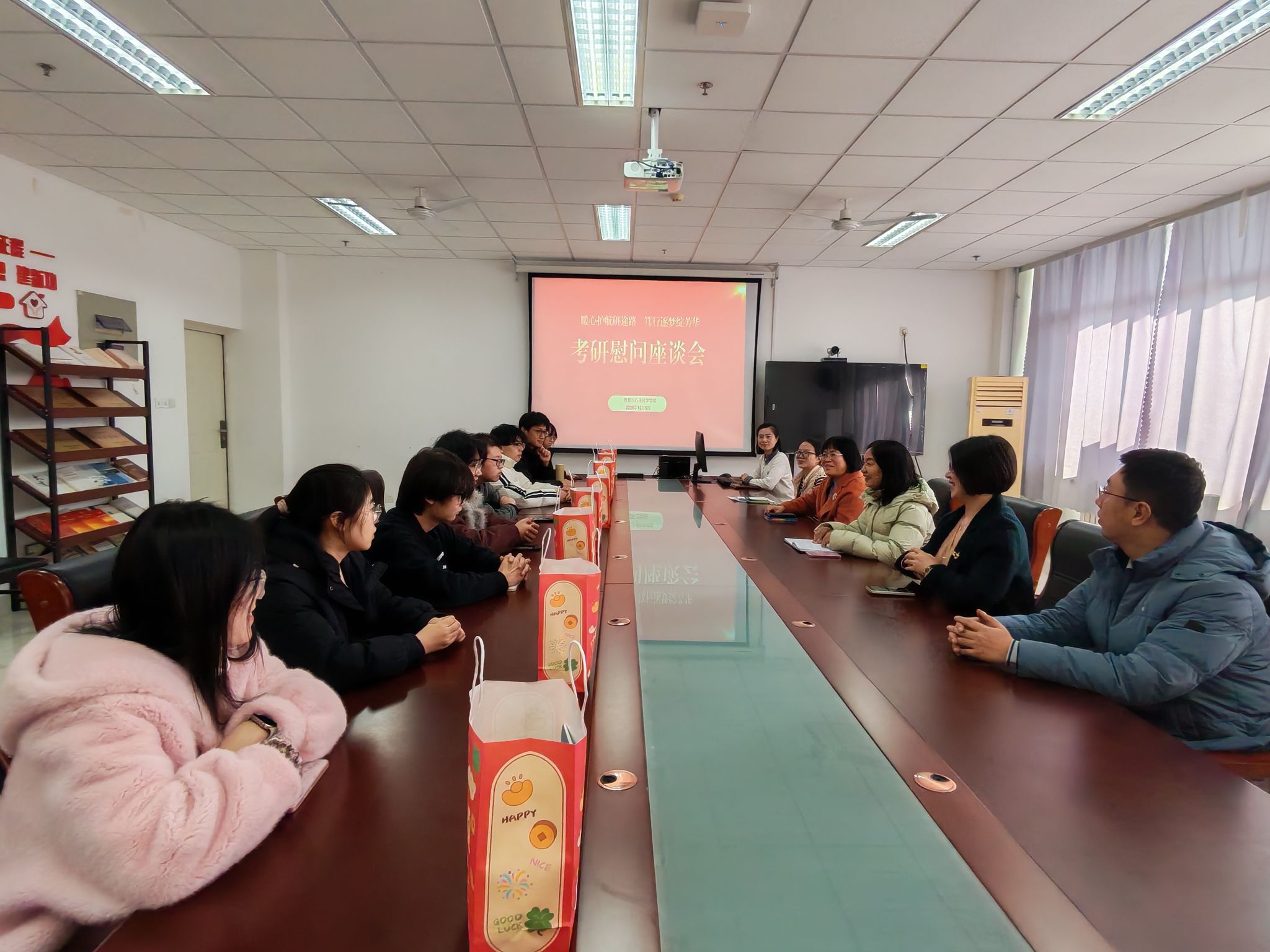 召开2026届考研慰问座谈会。学院党委书记卢琦、院长陈功香、副院长李开云和杨鹏、学办主任卓华丽、毕业班辅导员曹丽丽及2026届考研学生代表参与活动。